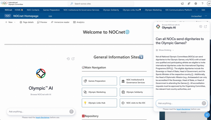 随后,国际奥委会首席信息技术官Ilario Corna分享了已落地的多款奥运AI模型应用实例,这些应用均依托阿里相关技术实现,其中包括为各国奥运代表团推出的国家奥委会AI助手,代表团成员可通过母语随时查询天气、住宿、场馆位置、停车许可等各类奥运相关信息,彻底消除了奥运信息获取中的语言障碍。